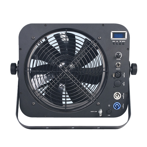 ノバコープ「VX-2.0」はエフェクトファンです。高強度の金属ファンを使用し、静かで滑らかなファンがスモークをムラなく広げます。ファンスピードを0〜100%に調節可能で、煙が薄くても場所全体に迅速に煙を広げることが可能です。操作面においては、1CH/2CH のDMX を搭載しており、3pin XLR 端子を本体リア側に装備しています。ハンギングブラケットは三脚として使用可能で、様々な角度設定を行うことができます。吊り設置も可能で、様々な場所に簡単に設置できます。